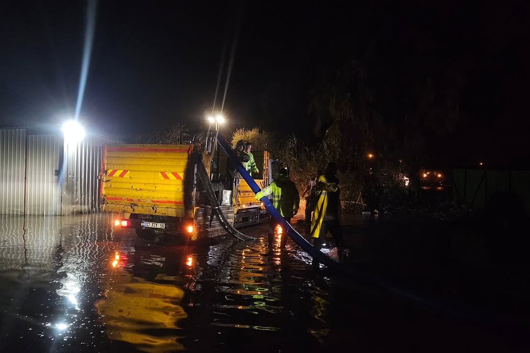 Antalya'nın Kepez ilçesinde akşam saatlerinde etkili olan sağanak yağış sonrası belediye ekipleri, gelen ihbarlara hızlı bir şekilde müdahale etti.