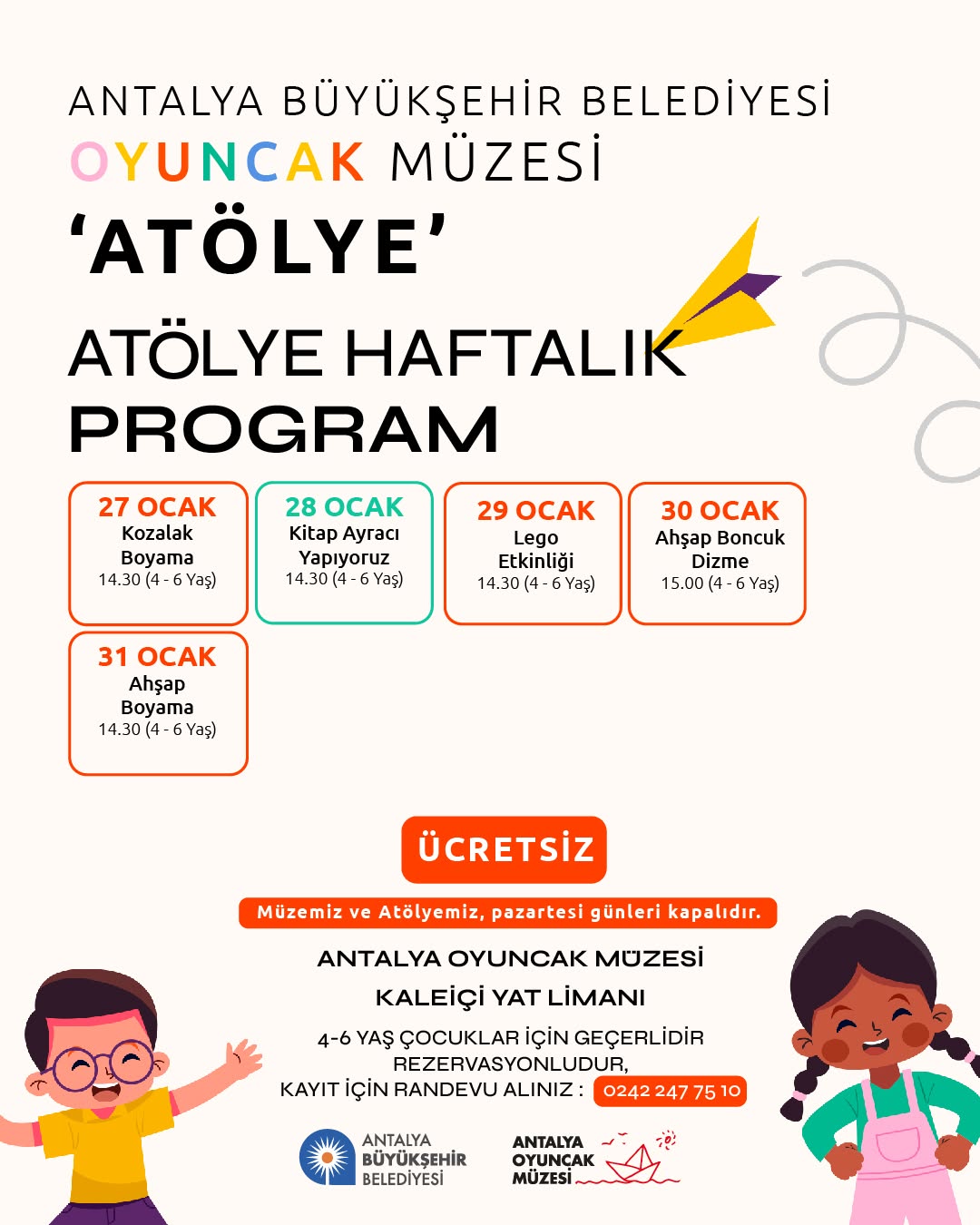 Antalya Büyükşehir Belediyesi’ne bağlı Oyuncak Müzesi Atölye, yarıyıl tatilinde çocuklar için dopdolu bir program hazırladı. 27