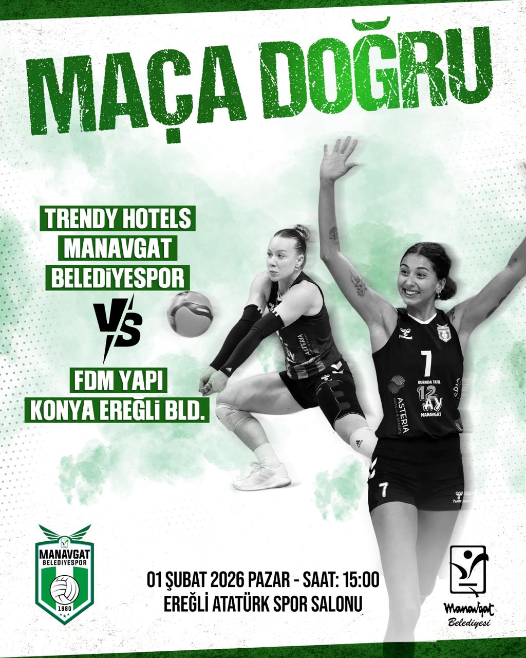 Trendy Hotels Manavgat Belediyespor Kadın Voleybol Takımı, Türkiye Kadınlar Voleybol Ligi'nin 19. haftasında önemli bir deplasman maçına çıkıyor. Takım, FDM Yapı Konya Ereğli Belediyespor ile karşılaşacak.
