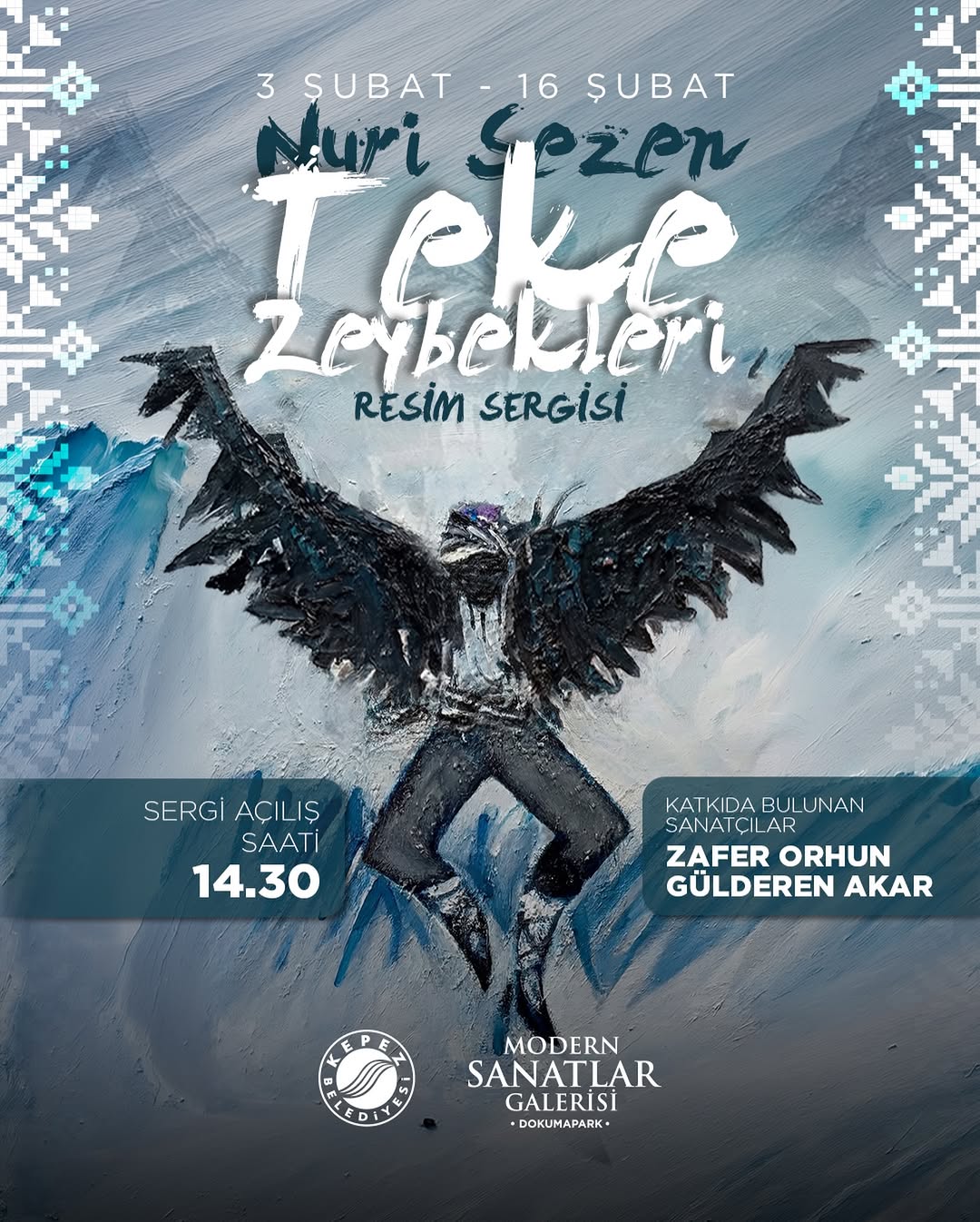 Sanatçı Nuri Sezen, "Teke Zeybekleri" adlı resim sergisiyle, Anadolu'nun köklü zeybek geleneğini tuvaline yansıtıyor. Sergi, gücün, duruşun ve özgürlüğün sembolü olan zeybeklerin ruhunu modern bir estetik anlayışla izleyiciye sunuyor.