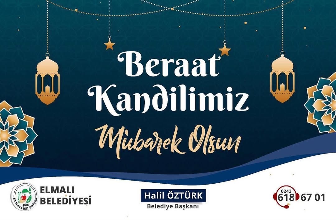 Elmalı Belediyesi, İslam alemi için büyük öneme sahip olan Beraat Kandili dolayısıyla bir mesaj yayımladı. Yayımlanan mesajda, bu mübarek gecenin hayırlara vesile olması temenni edildi.