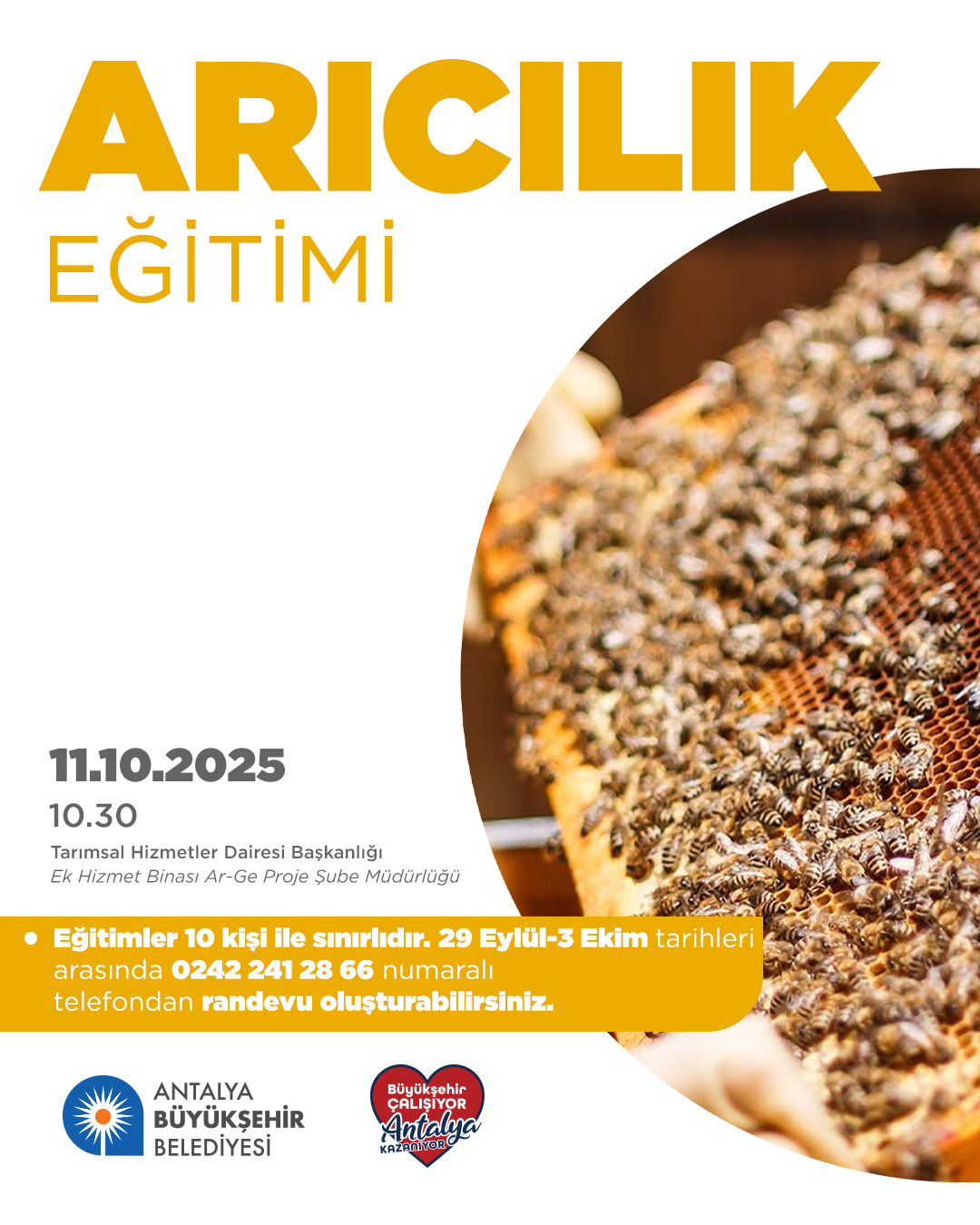 Antalya Büyükşehir Belediyesi'nin düzenlediği bu eğitimle, şehirdeki tarımsal üretimin çeşitlendirilmesi ve arıcılık sektörünün geliştirilmesi hedefleniyor.