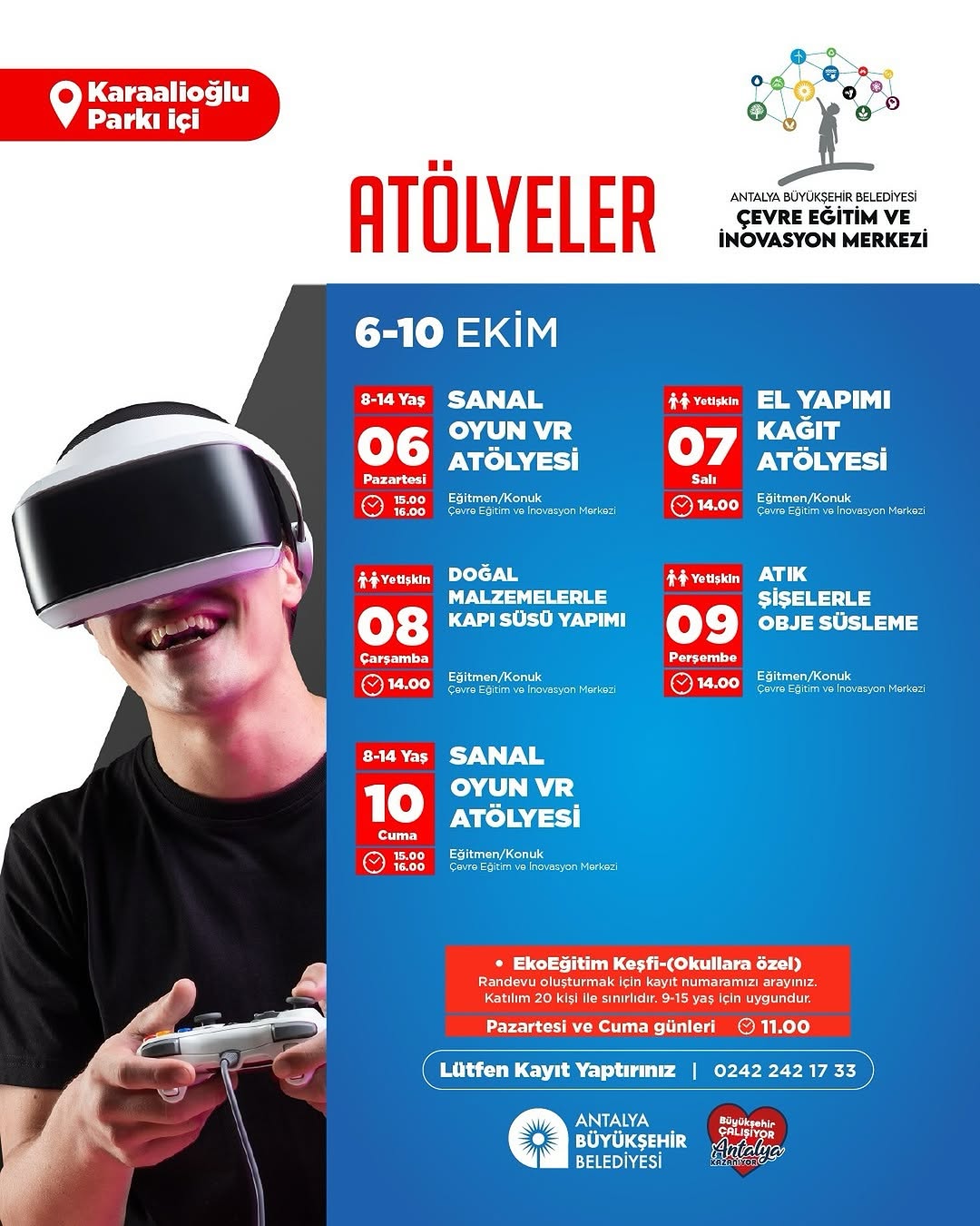 Antalya Büyükşehir Belediyesi, çevre bilincini artırmak amacıyla düzenlediği ücretsiz atölye çalışmalarıyla dikkat çekiyor. Çevre Eğitim ve İnovasyon Merkezi tarafından 6
