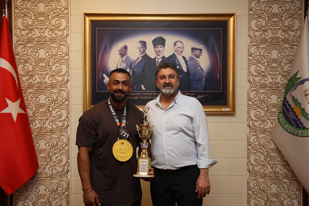 Serik Belediyesi, ilçenin gururu olan sporcu İbrahim Özyıldız'ı başarısından dolayı tebrik etti. Özyıldız, vücut geliştirme dalında Türkiye Şampiyonu unvanını elde etti.