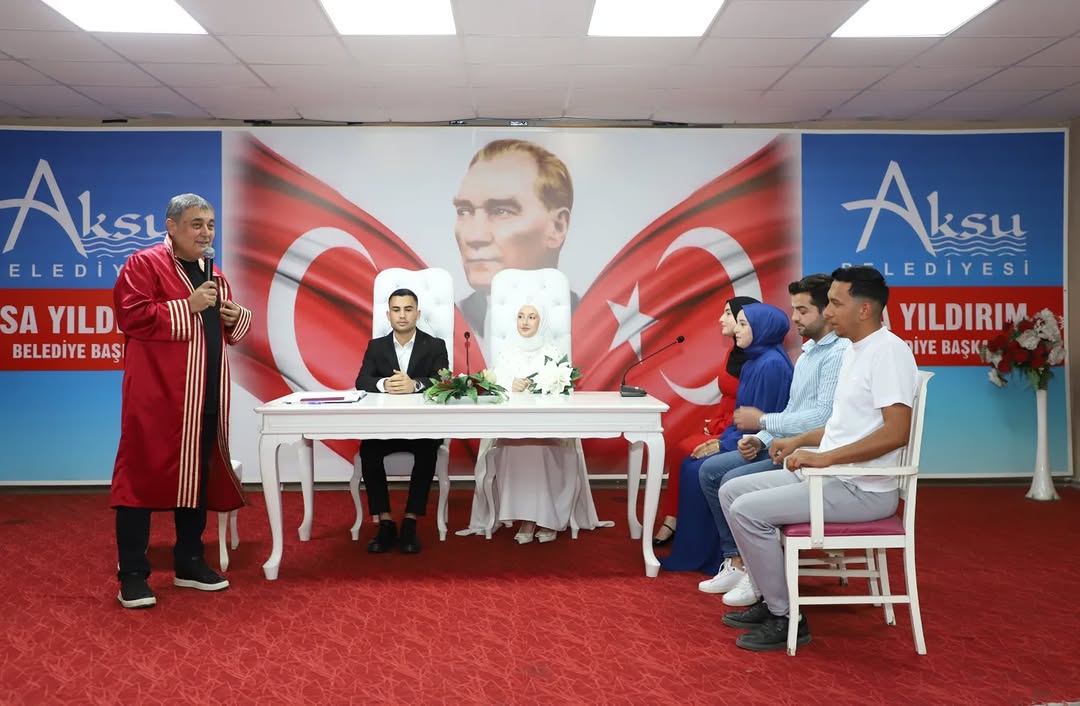 Antalya'nın Aksu ilçesinde düzenlenen nikah töreninde, Belediye Meclis Üyesi Hüseyin Yılmaz'ın oğlu İsmail Can Yılmaz ile Ayşe Yalçın evlilik birliğine adım attı. Tören, Aksu Belediyesi nikah salonunda gerçekleştirildi.