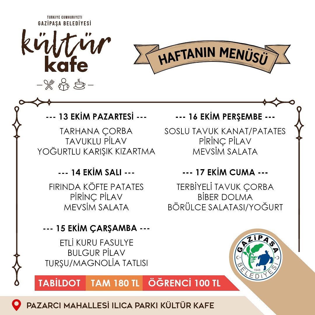 Gazipaşa Kültür Kafe'de Yeni Haftanın Menüsü Açıklandı