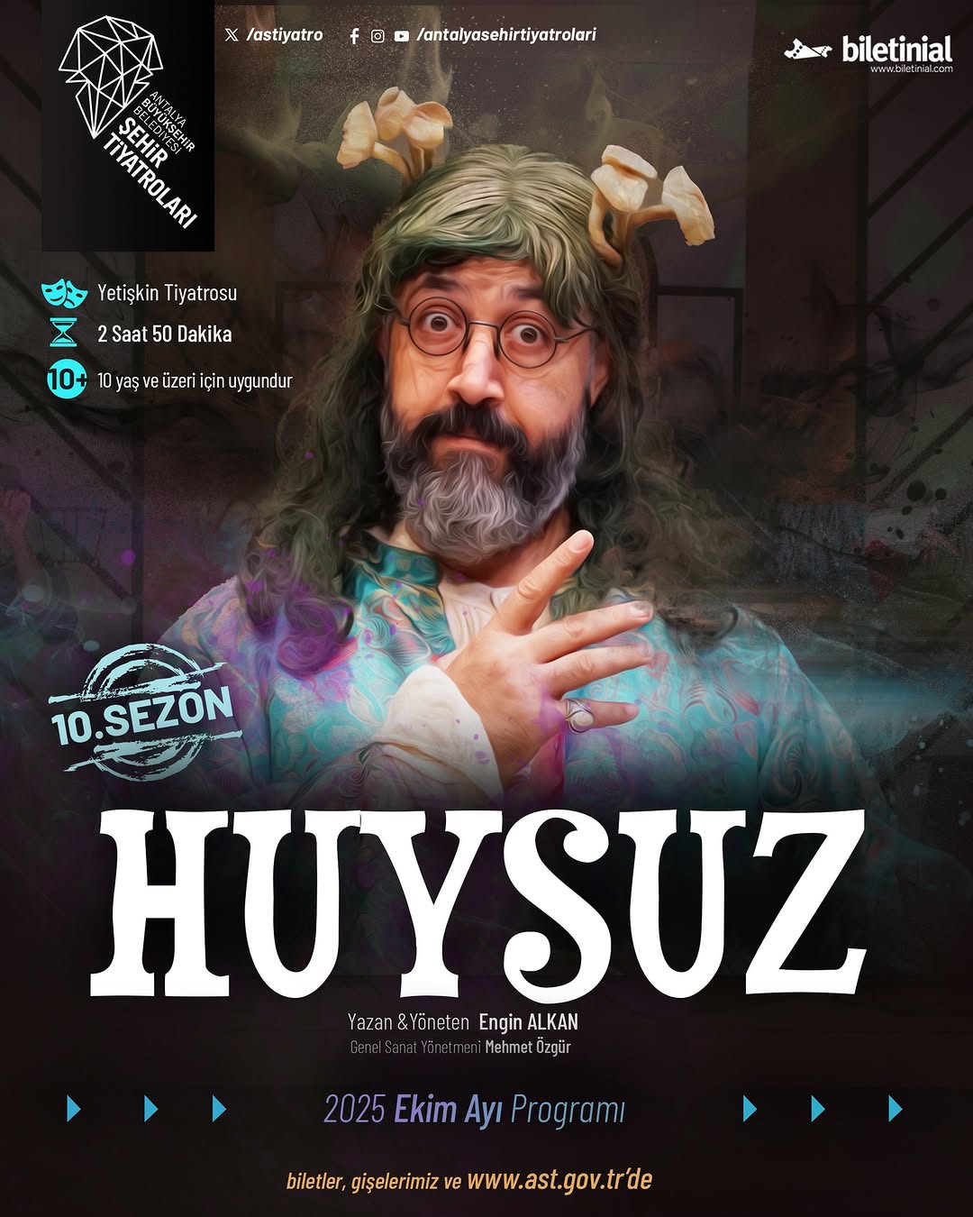 Oyunun yazarı ve yönetmeni olan Engin Alkan, "Huysuz" ile seyirci karşısına çıkıyor. Bu önemli eser, Antalya'nın kültür sanat hayatına değer katmaya devam ediyor.