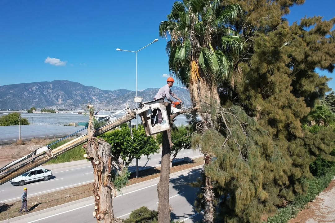 Antalya'nın Kumluca Belediyesi, ilçenin yeşil dokusunu korumak ve güzelleştirmek amacıyla çalışmalarını aralıksız sürdürüyor. Bu kapsamda, Ahmet Ali Ağa Bulvarı'ndaki ağaçlarda budama ve şekillendirme çalışmalarına devam ediliyor.