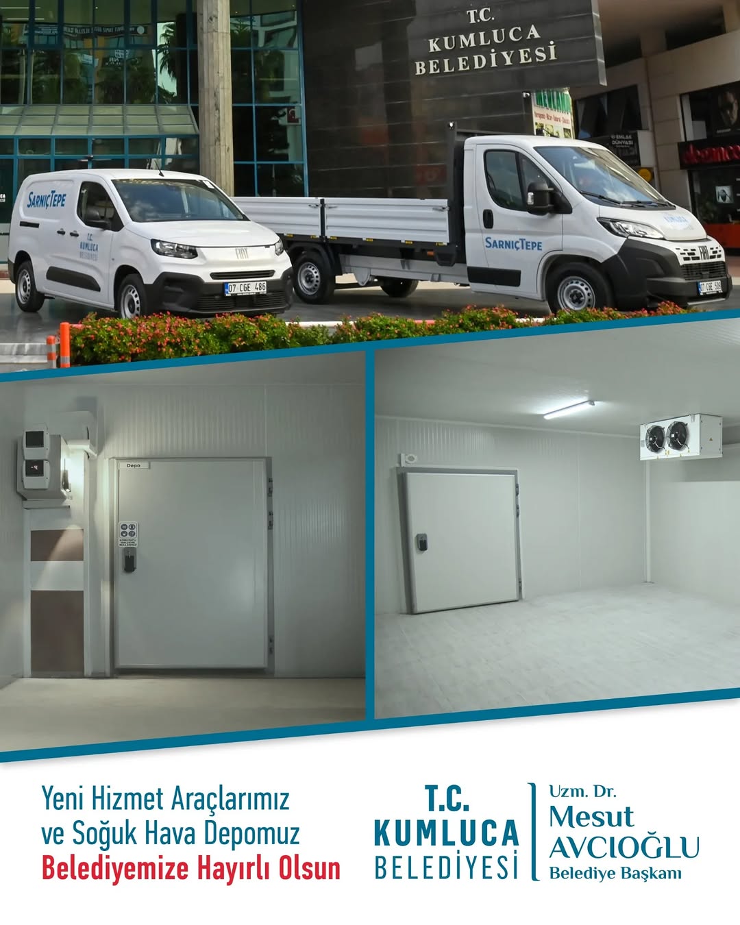 Antalya'nın Kumluca Belediyesi, vatandaşlara daha verimli ve nitelikli hizmet sunmak amacıyla araç filosunu güçlendirdi. Belediye, hizmet kapasitesini artırmak için bir kamyonet, bir panelvan soğuk hava aracı ve bir soğuk hava deposu hizmete aldı.