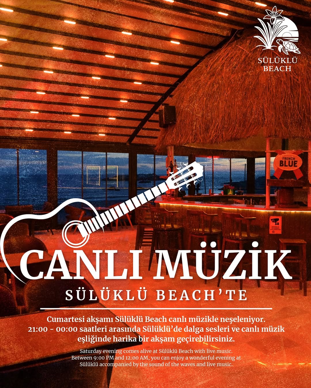 Antalya'nın Demre ilçesinde bulunan Sülüklü Beach, hafta sonu müzikseverler için özel bir etkinlik düzenliyor. 27 Aralık Cumartesi akşamı saat 21:00'de başlayacak olan canlı müzik performansı, ziyaretçilere unutulmaz bir deneyim vaat ediyor.