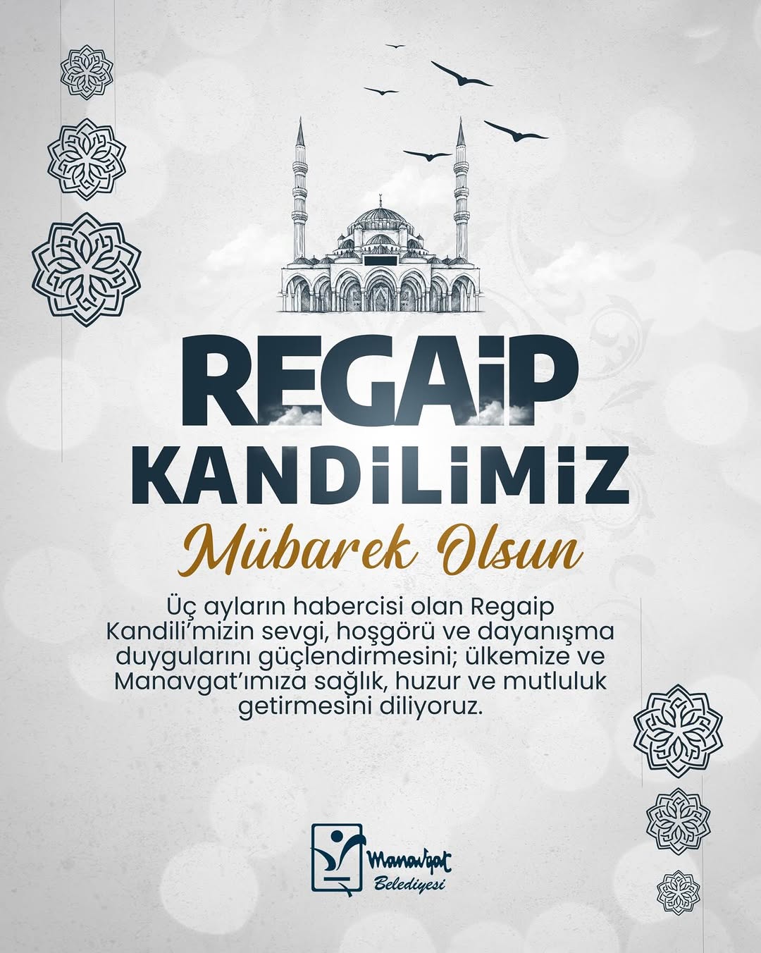 Antalya'nın Manavgat Belediyesi, İslam alemi için büyük önem taşıyan üç ayların başlangıcı Regaip Kandili dolayısıyla bir mesaj yayımladı. Belediye, kandilin sevgi, hoşgörü ve dayanışma duygularını pekiştirmesini temenni etti.
