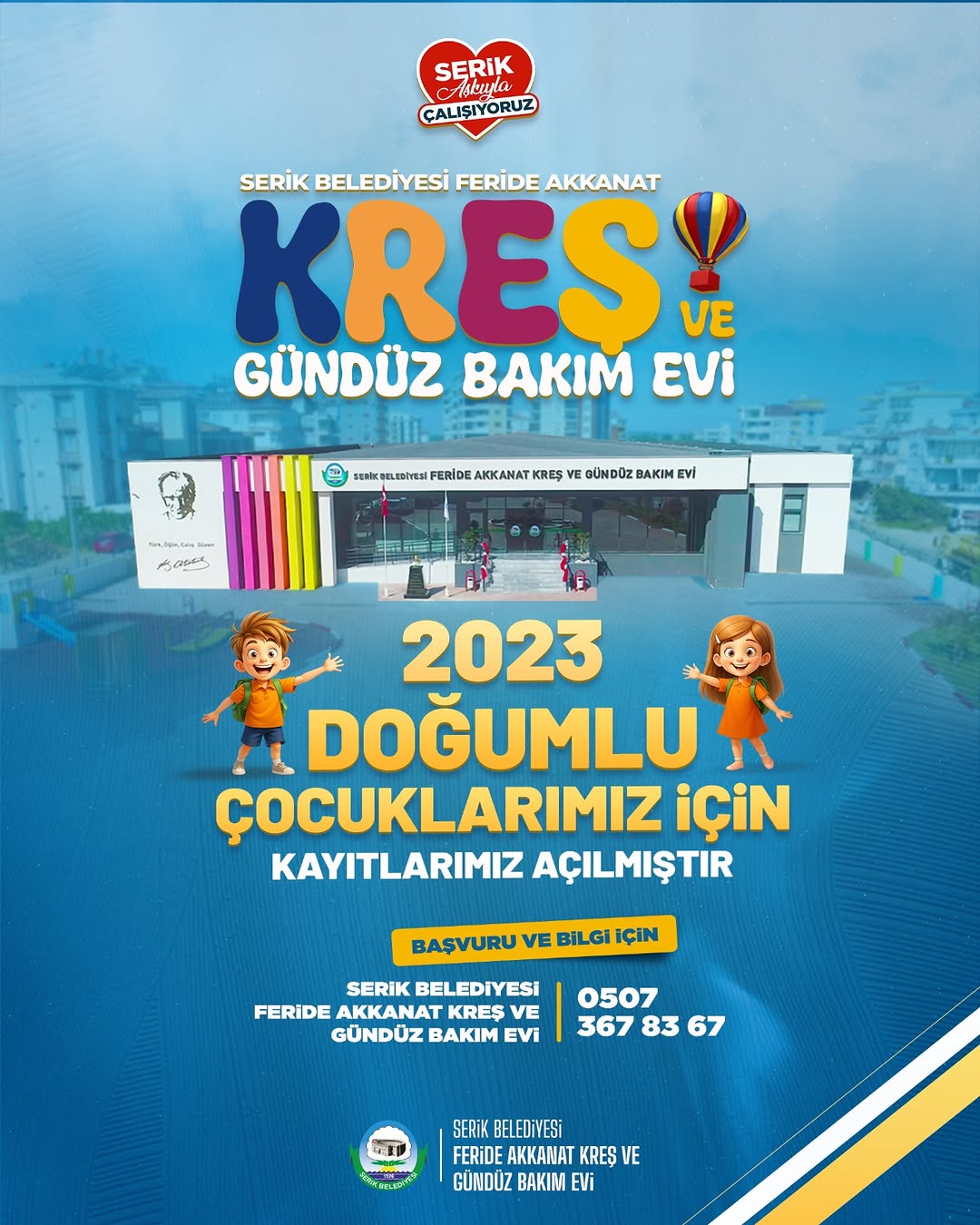 Serik Belediyesi, 2023 yılında doğan çocuklar için resmi kayıt işlemlerini başlattı. Ailelerin nüfus işlemleri gibi önemli süreçleri başlatabilmeleri için kayıtlar, belirlenen telefon numarası üzerinden yapılıyor.