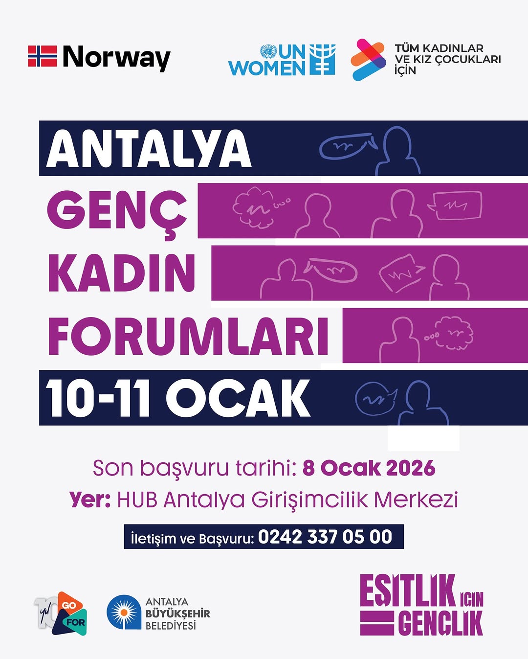 Antalya'da genç kadınların şehir yaşamındaki görünürlüğünü ve söz sahibi olmalarını desteklemek amacıyla önemli bir forum düzenleniyor. UN Women, Norveç Hükümeti, GoFor ve Antalya Büyükşehir Belediyesi iş birliğiyle yürütülen Eşitlik için Gençlik programı kapsamındaki Genç Kadın Forumları, 10