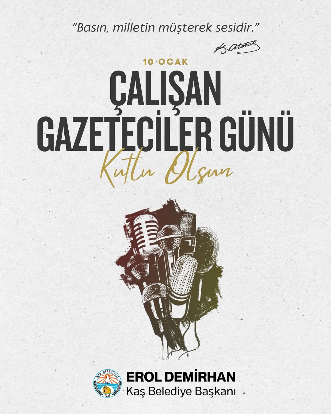 Antalya'nın Kaş Belediyesi, 10 Ocak Çalışan Gazeteciler Günü dolayısıyla bir mesaj yayımladı. Belediye adına yapılan açıklamada, basın sektöründe görev yapan tüm çalışanların günü kutlandı.