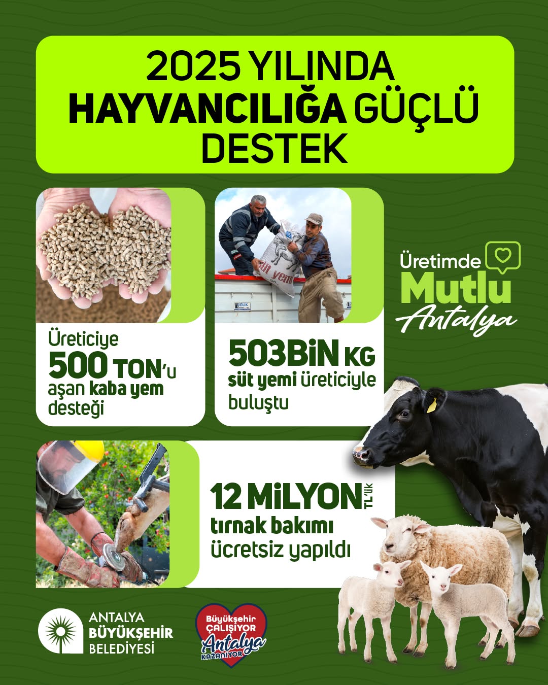 Antalya Büyükşehir Belediyesi, 2025 yılında kentteki hayvancılık sektörünü güçlendirmek amacıyla kapsamlı bir destek paketini hayata geçirdi. Yapılan açıklamada, kırsal kesimde üretimin desteklenmesi ve üreticinin yükünün hafifletilmesinin hedeflendiği belirtildi.